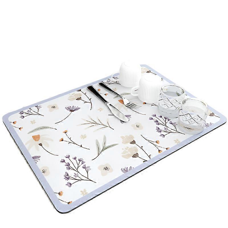 2 Pcs Purple Flowers Kitchen Drying Mat Super Absorbent Dish Cup Drainer Pad 30X40cm Kitchen Bench Mats