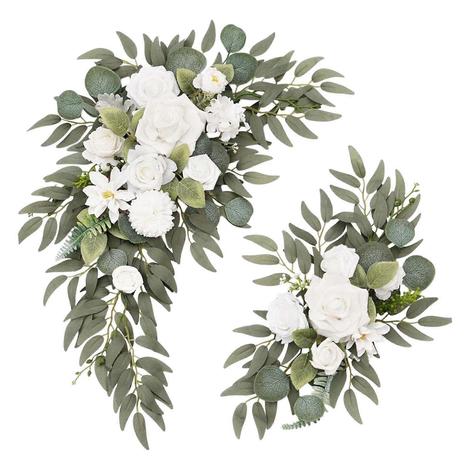 2Pcs Wedding Arch Flowers Artificial Floral Swag for Home Reception Ceremony white