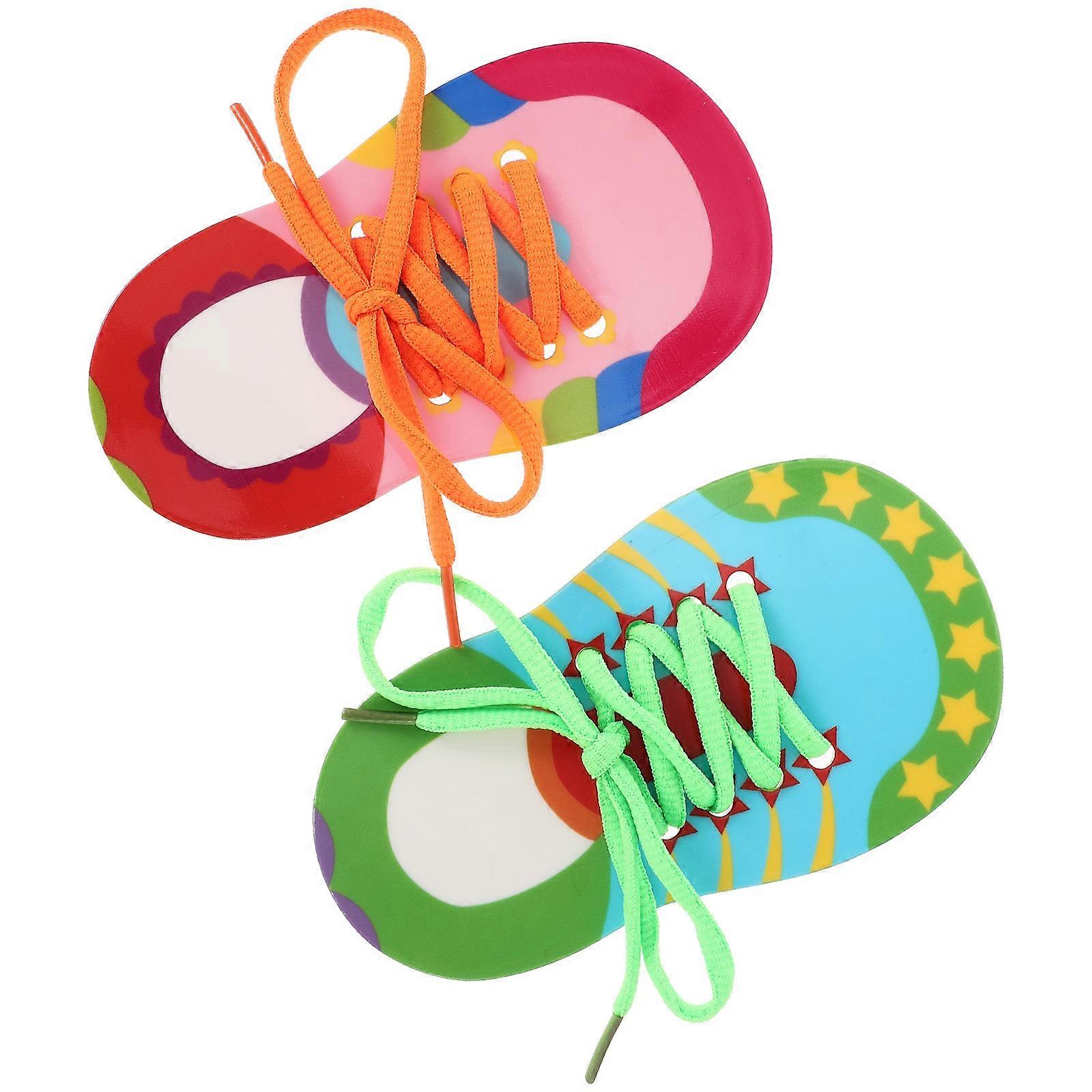 2pcs Kids Shoelace Threading Learning Toys Toddler Lacing Shoes Educational Aids (Blue and Pink)