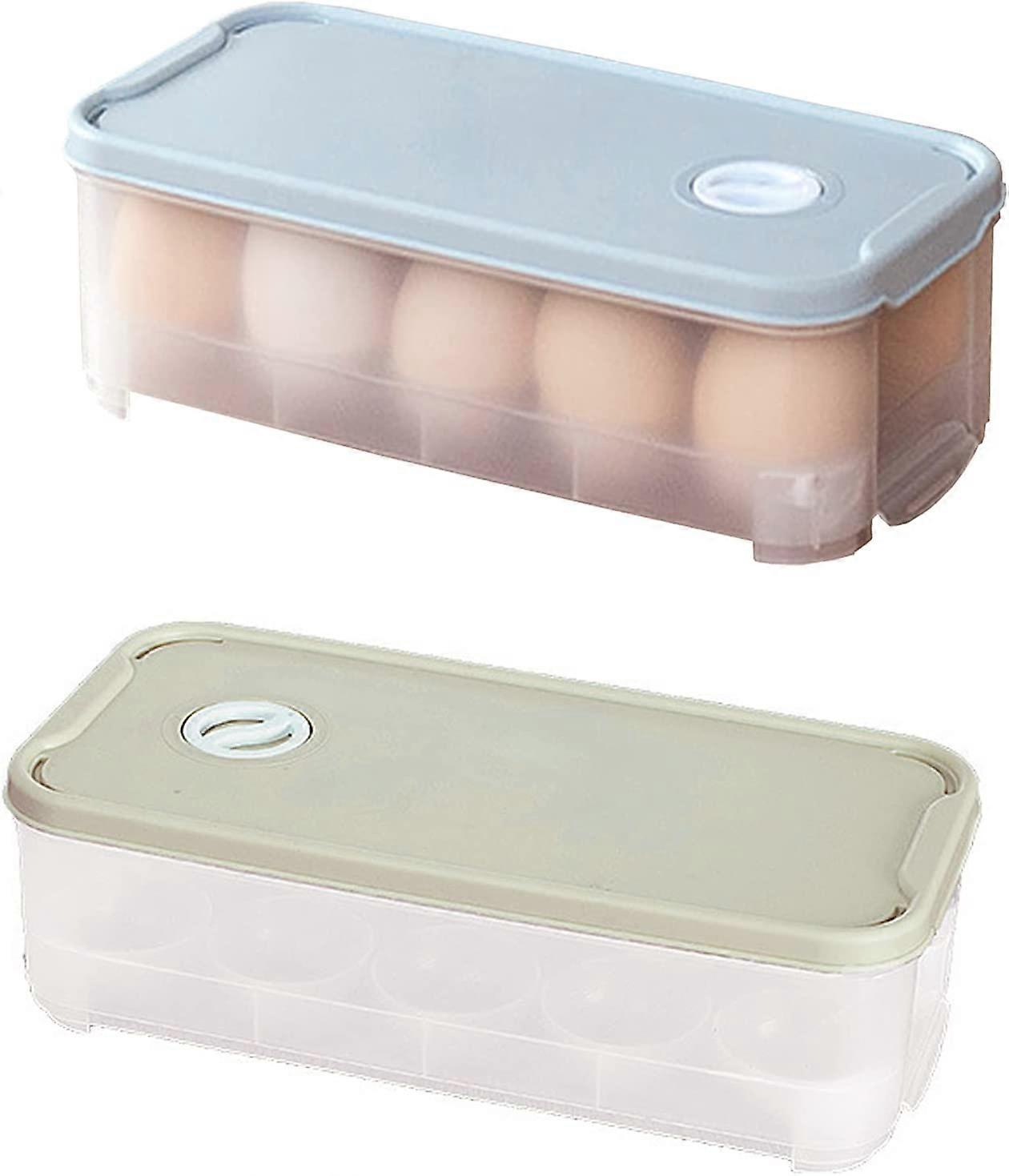 2 pcs egg storage box egg door refrigerator container plastic with cover