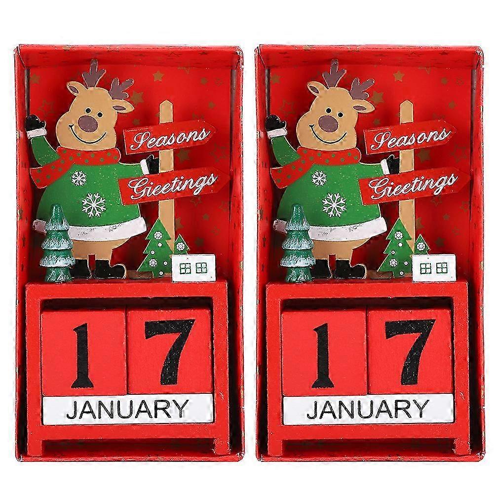 2Pcs Christmas Calendar Ornaments Wooden Crafts Decorations Countdown Box Gift Red