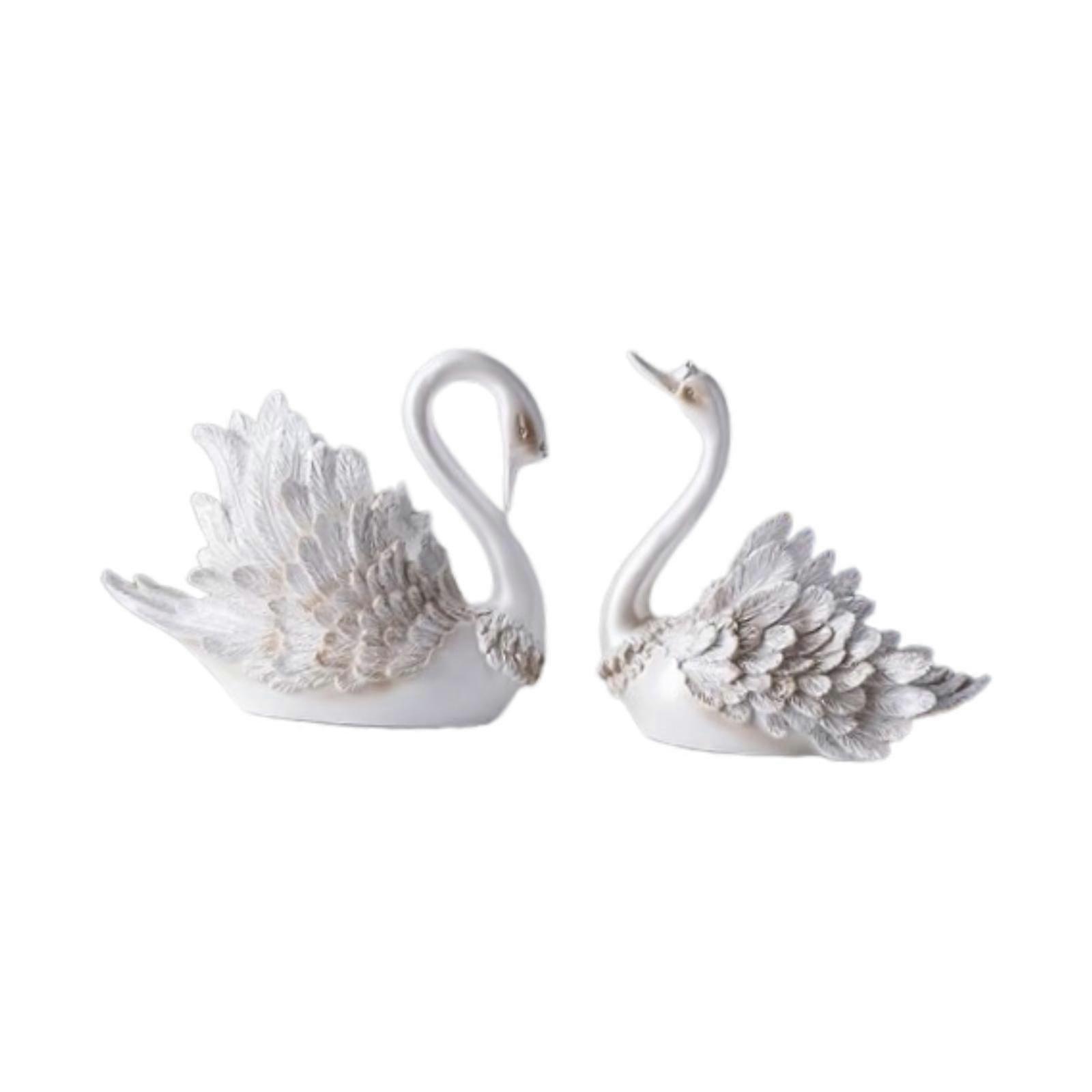 2Pcs Swan Ornament Home Living Room Resin Party Valentines Day Swan Figurine silver
