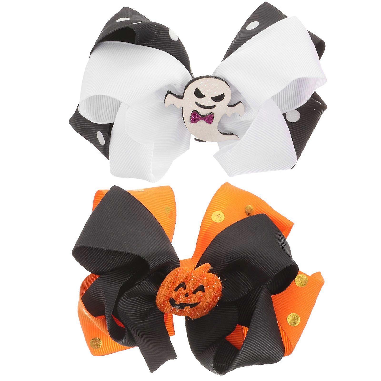2Pcs Halloween Hair Bow Clips Ghost Pumpkin Hair Bow Barrettes Halloween Costume Props