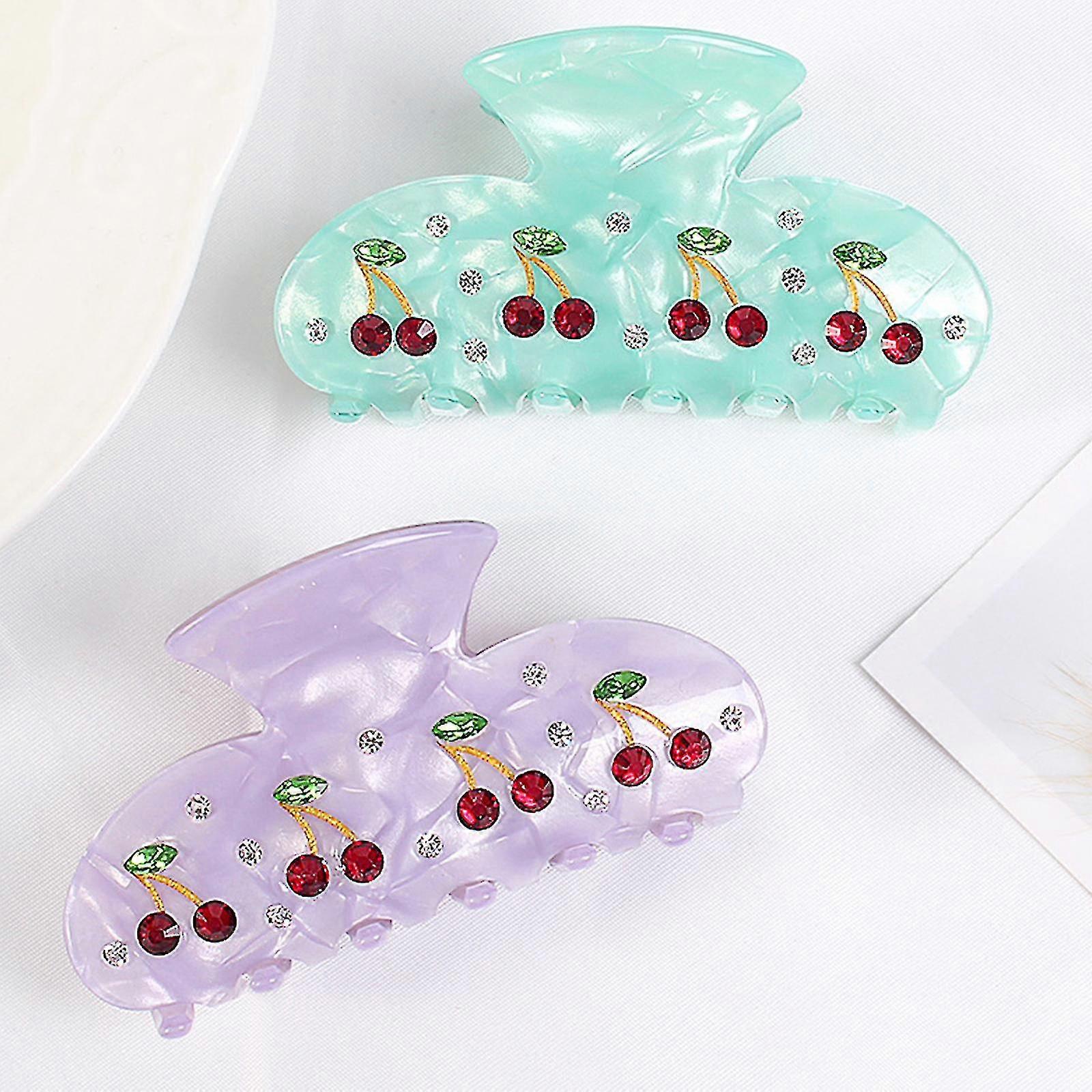 2pcs Cute Cherry Hair Clips For Thick Thin Hair Women Medium Claw Clips For Hair Styling Accessories(green And Purple)