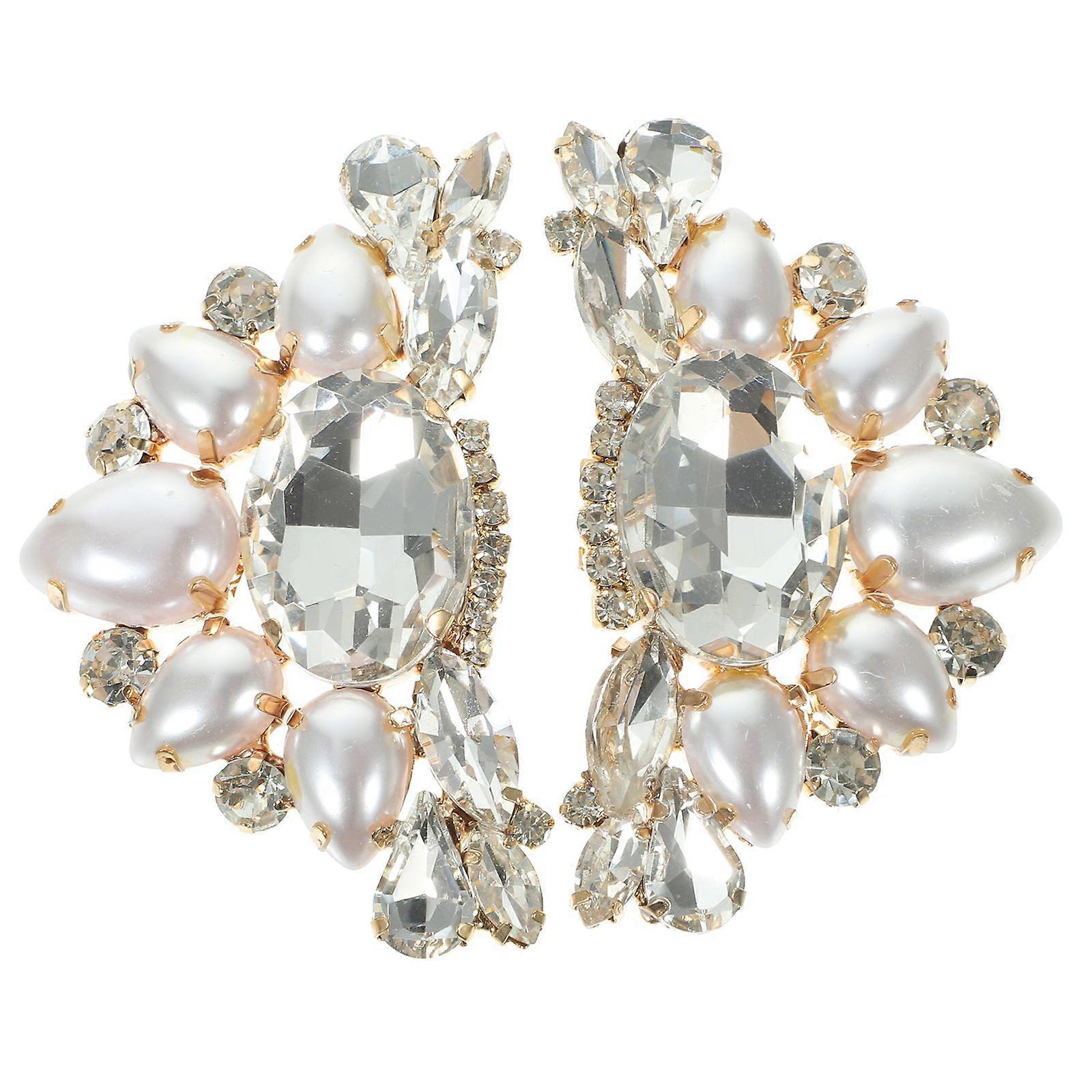 2pcs Crystal Shoe Clips Decorative Shoe Buckles Pearl Shoe Clips Wedding Shoe Accessories