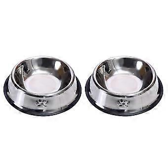 2Pcs Stainless Steel Dog Bowls, Dog Feeding Bowls, Dog Plate Bowls with Rubber Base(L)