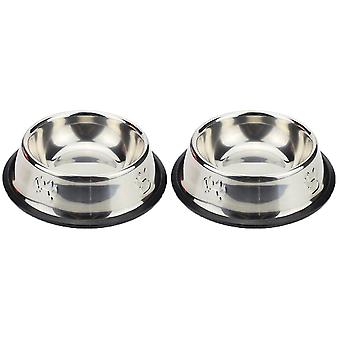 2pcs Stainless Steel Dog Bowl For Dish Water Paw Dog Food Bowl Pet Puppy Cat Feeder 22cm