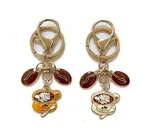 2pcs Coffee Cup Keychain: Metal Coffee Beans Charm Keychain Bag Pendant Keyring For Men And Women Colleague Friends Purse Handbag Decor Chocolate
