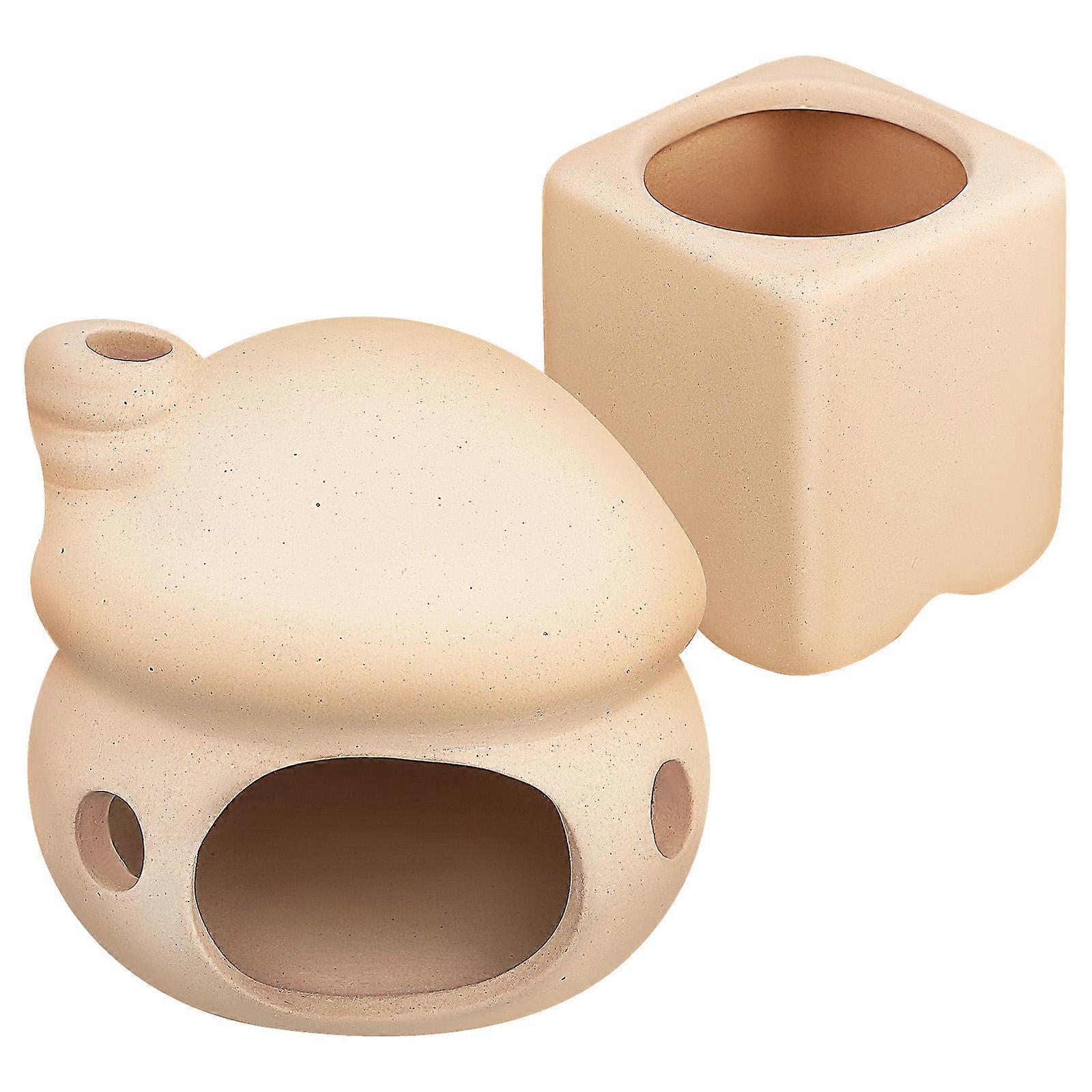 2 Pcs Ceramic Fish House Aquarium Decor Beige Betta Cave Hideout for Tank Decoration, Easy to Place in Home or Office