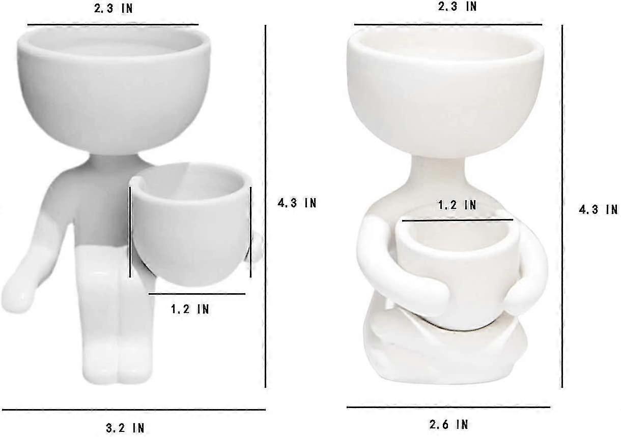 2pcs Ceramic Succulent Plant Pot Creative Human Shaped Small Cactus Pots Flower Pots Mini Plant Planters(white &black )