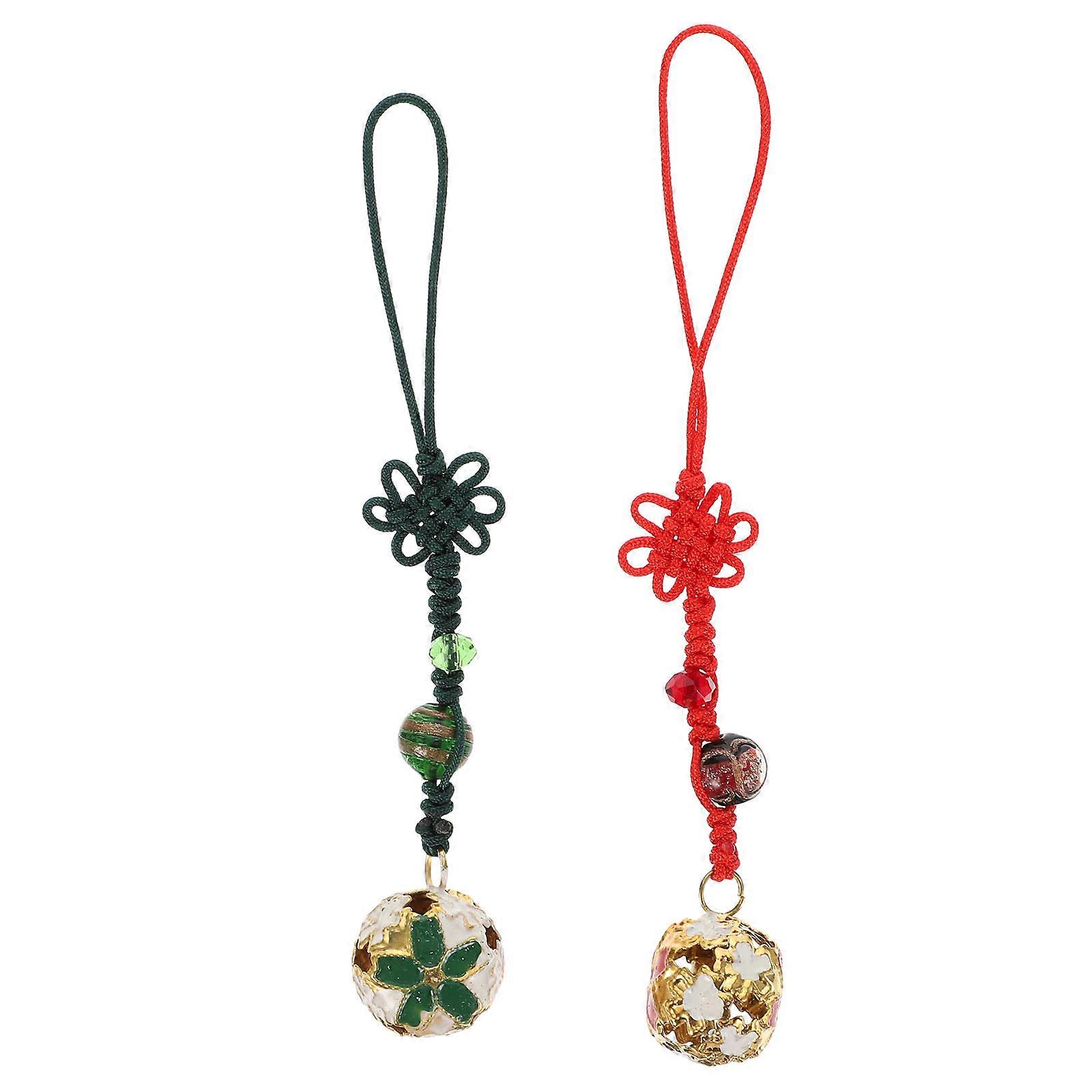 2pcs Vintage Chinese Knot Keyring Pendants Hanging Ornament for Bags Creative Birthday Accessory with Bell Unisex Design