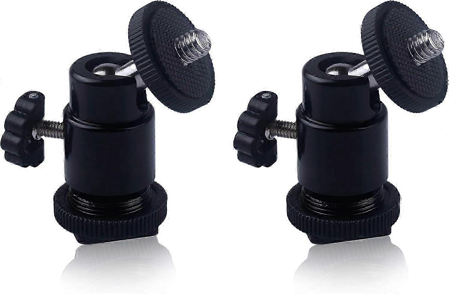 2pcs Mini Camera Ball Head with 1/4'' Hot Shoe Tripod Mount Adapter - 360 Degree Rotatable Photography Accessory