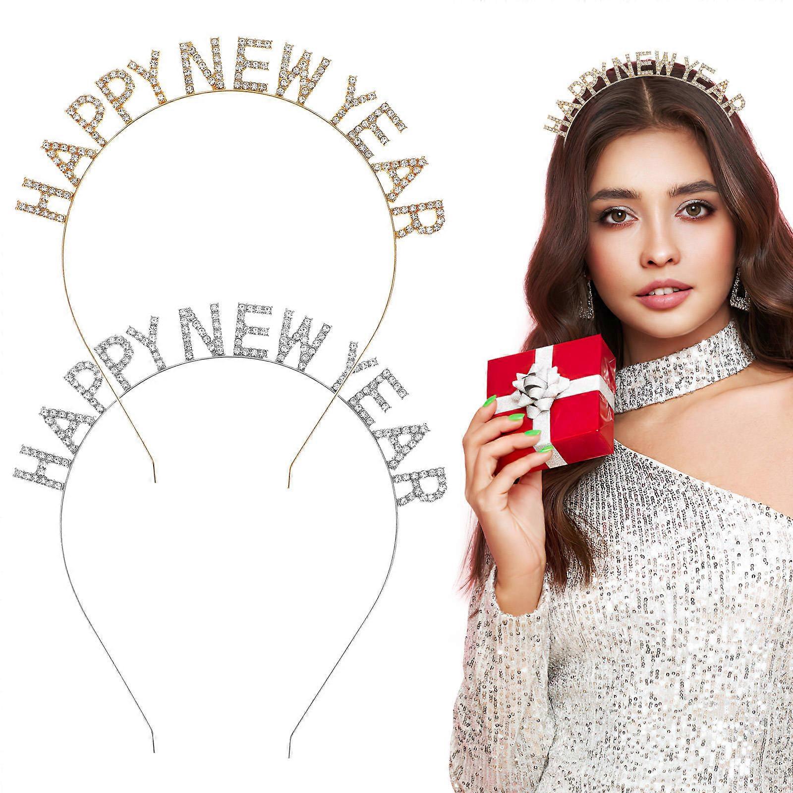2PCS Rhinestone Letter Headbands Decorative HAPPY NEW YEAR Hair Hoops