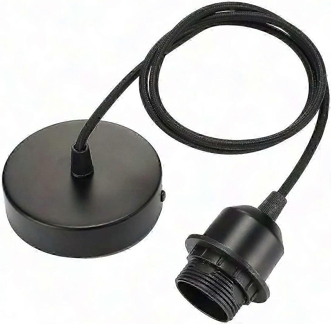 [Universal E27 Socket Holder]: The bulb holder with cable is suitable for various E27 threaded bulbs such as Edison lamps, LED lamps, etc. The maximum power of the lamp holder is 100 W and the operating voltage range is: 220-240 V. a solid disc that keeps the bulb stable and does not fall during use.Adjustable hanging wire design: The total length of the ceiling light pendant is 100cm, the length of the adjustable hanging wire is 90cm, and the diameter of the ceiling is 9.6cm. If you think the 100cm chandelier is too long, simply loosen the cable gland at the top and slide the cable into the ceiling to cut it to the desired length. The ceiling cover can hide the excess rope, which is practical and beautiful.[High Temperature Resistance]: E27 lamp holder is made of high quality metal iron and PVC plastic, with flame retardant and heat insulation properties, good insulation, safe to use, and high temperature resistance, which is not easy to damage.[Strong conductivity]: The lead wire is made of 0.75 square two-conductor round wire made of pure copper, the length of the wire is 90cm. The maximum power used is 100W, and the voltage range is 220-240V. The pure copper wire has strong electrical conductivity, good fire resistance, heat resistance, corrosion resistance, safety and is not easy to short circuit.[Ideal choice for retro style design]: The simple hanging wire design can perfectly show the bulb light. The whole chandelier lamp holder is black, and the black metal hanging bracket has a simple retro industrial style that suits any environment. Such as dining room, bedroom, kitchen, loft, cafe, library, dining room, living room, studio, bar, office, etc.