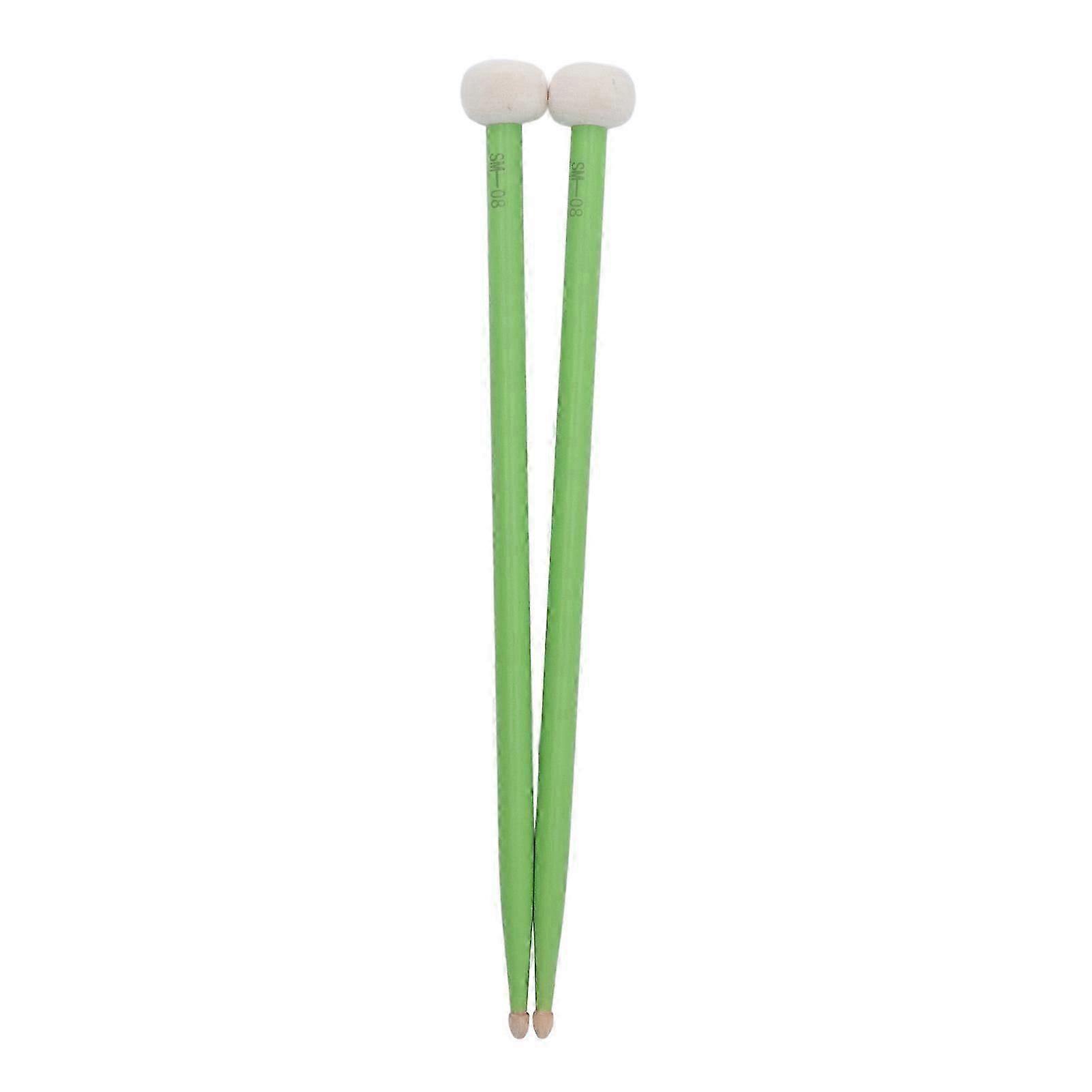 2Pcs Drum Mallet Felt Head Wooden Handle Non Slip Instrument Accessory Set Kit for Playing Green