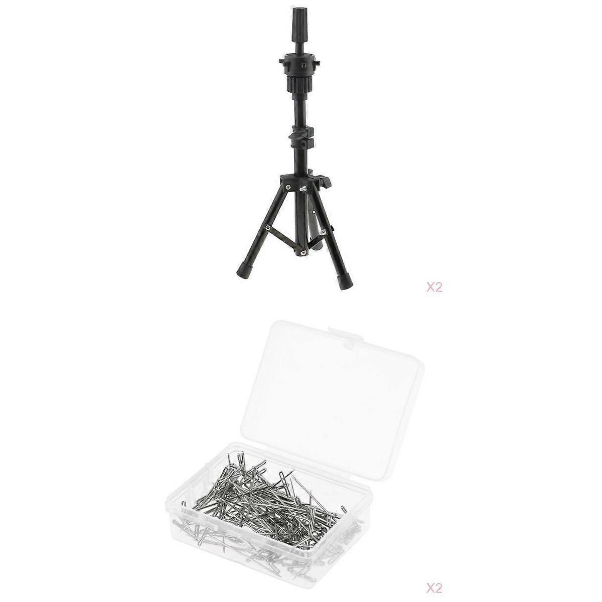 2PCS Mannequin Training Practice Head Holder Tripod + T Needle Pin Set