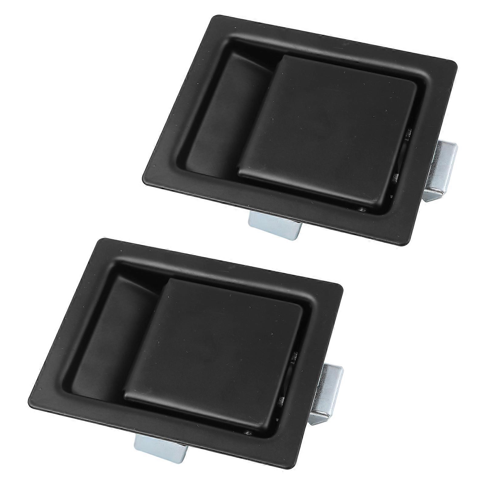 2Pcs 127 X 102mm Paddle Handle Latch Heavy Duty Carbon Steel Flush Mount Tool Box Latch for Truck RV Item Type: Paddle Handle Latch Material: Carbon Steel Panel, Stainless Steel Lock Finish: Black Spray Coating Installation Type: Embedded, Screw Fixing Exterior Size: Approx. 127 x 102mm / 5 x 4in Mounting Hole Size: Approx. 105 x 80mm / 4.13 x 3.15in Maximum Applicable Door Thickness: Approx. 10mm / 0.4in Application: Easily replace damaged or worn latches, Used for electrical cabinet, toolbox, power distribution cabinets, control cabinets, vehicles Toolbox, Truck, RV etc.