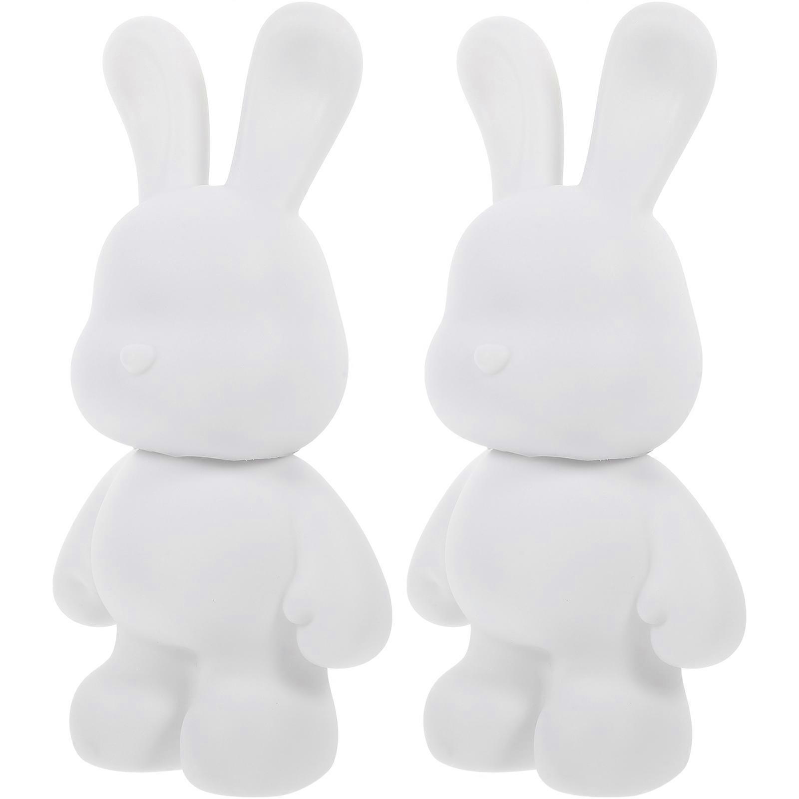 2pcs DIY White Bunny Piggy Bank Unpainted Rabbit Coin Bank for Creative Coloring, Kindergarten & Home Decoration