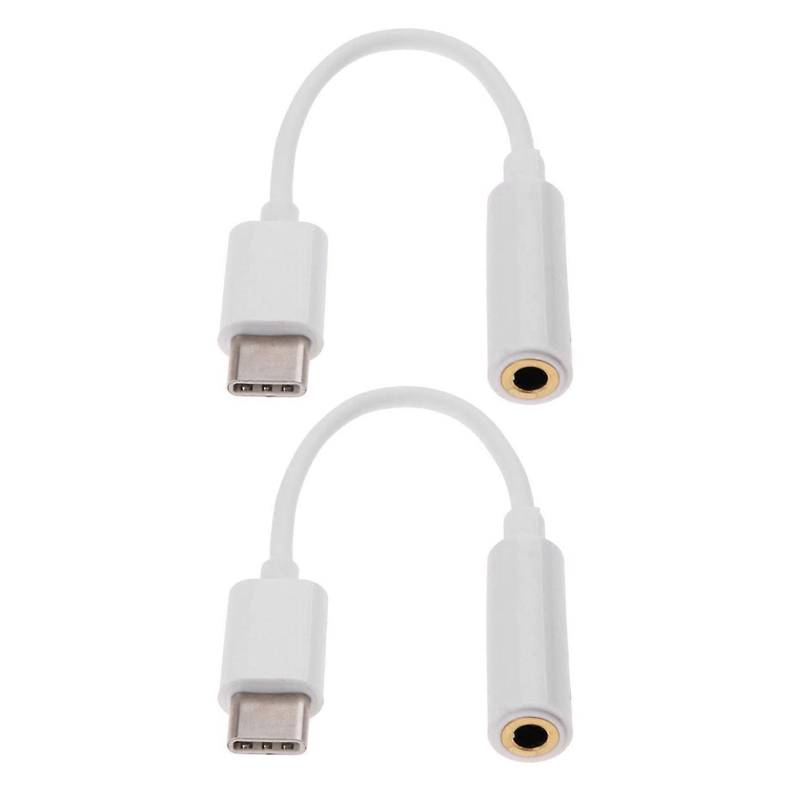 2Pcs USB Type C to 3.5 Port Earphone Adapter Cord USB C 3 5mm Cable Converter Wire Line 7cm Long White/ Black White