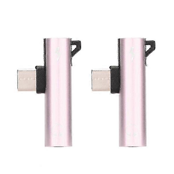 2 pcs USB C to 3.5mm Audio Adapter 2 in 1 Audio Charging USB C to Audio Jack ABS Pink