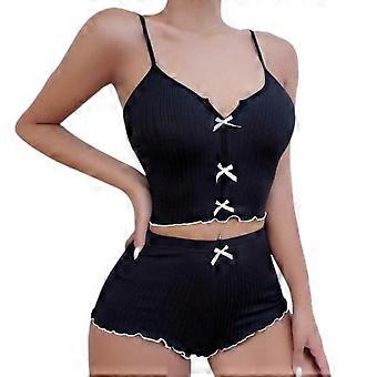 2Pcs/Set Lady Homewear Top Shorts Suit Heart Print Bow Decor Sleeveless Backless Vest Elastic High Waist Short Pants
