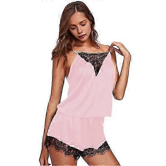 2 Pcs/Set Women Pajamas Set Lace Sleeveless Flower Embroidery Spaghetti Strap Top Elastic High Waist Slim Fit Shorts Homewear Vest Shorts Set Summer