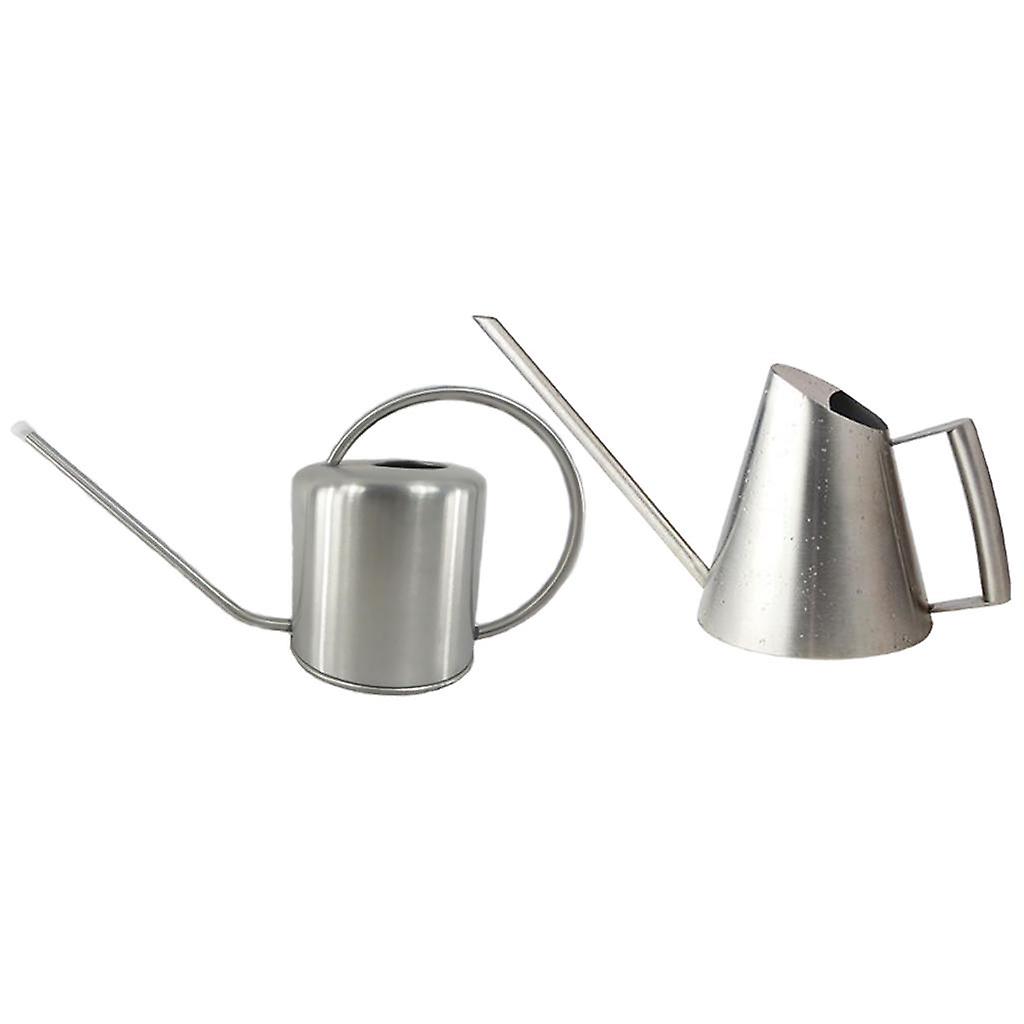 2 Pcs Stainless Steel Watering Can Pot Indoor House Plants Long Spout 1.5L