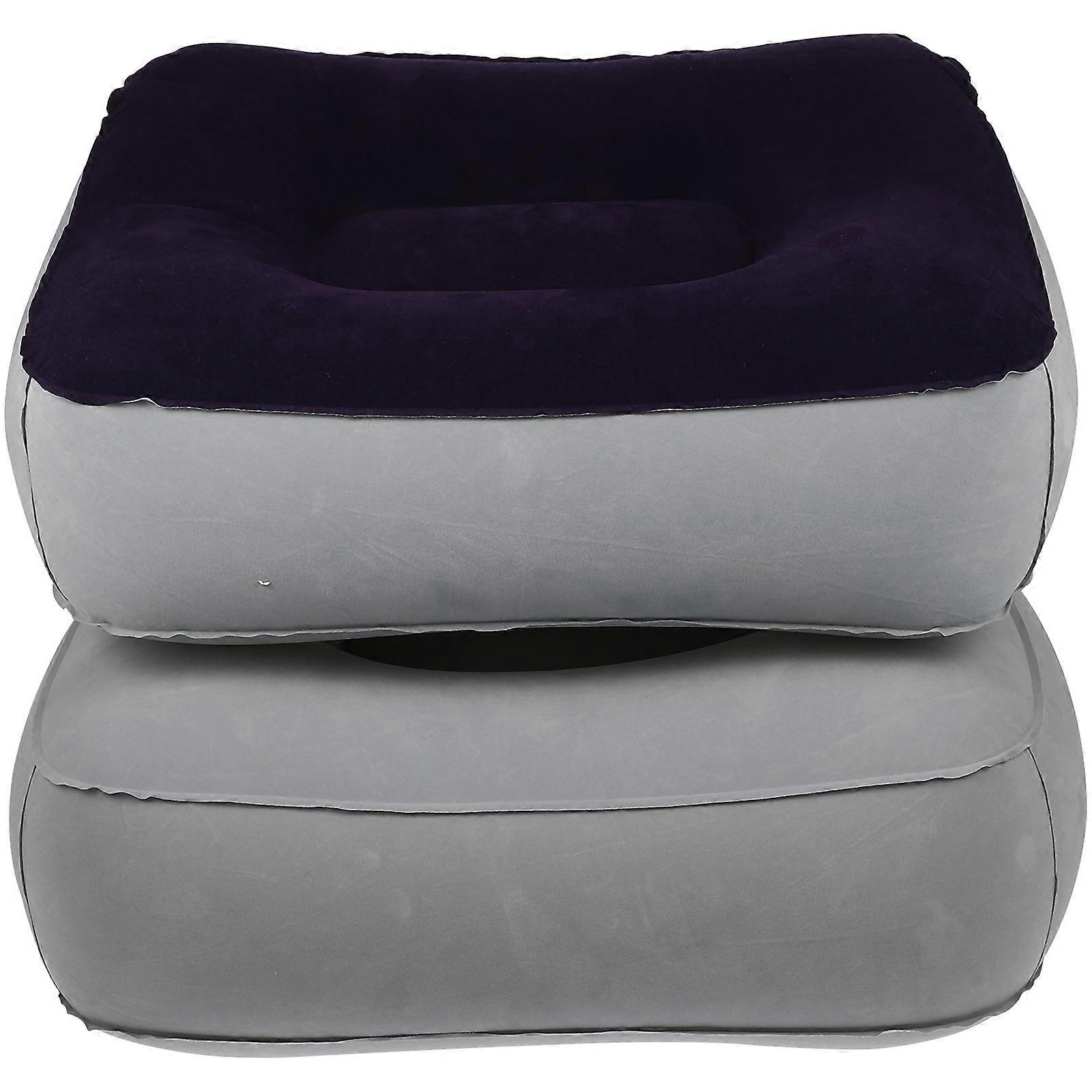 2 Pcs Inflatable Feet Rest Pillow Flocking PVC Foot Massage Stool Relax Cushion for Outdoor Travel (Grey Blue + Grey)