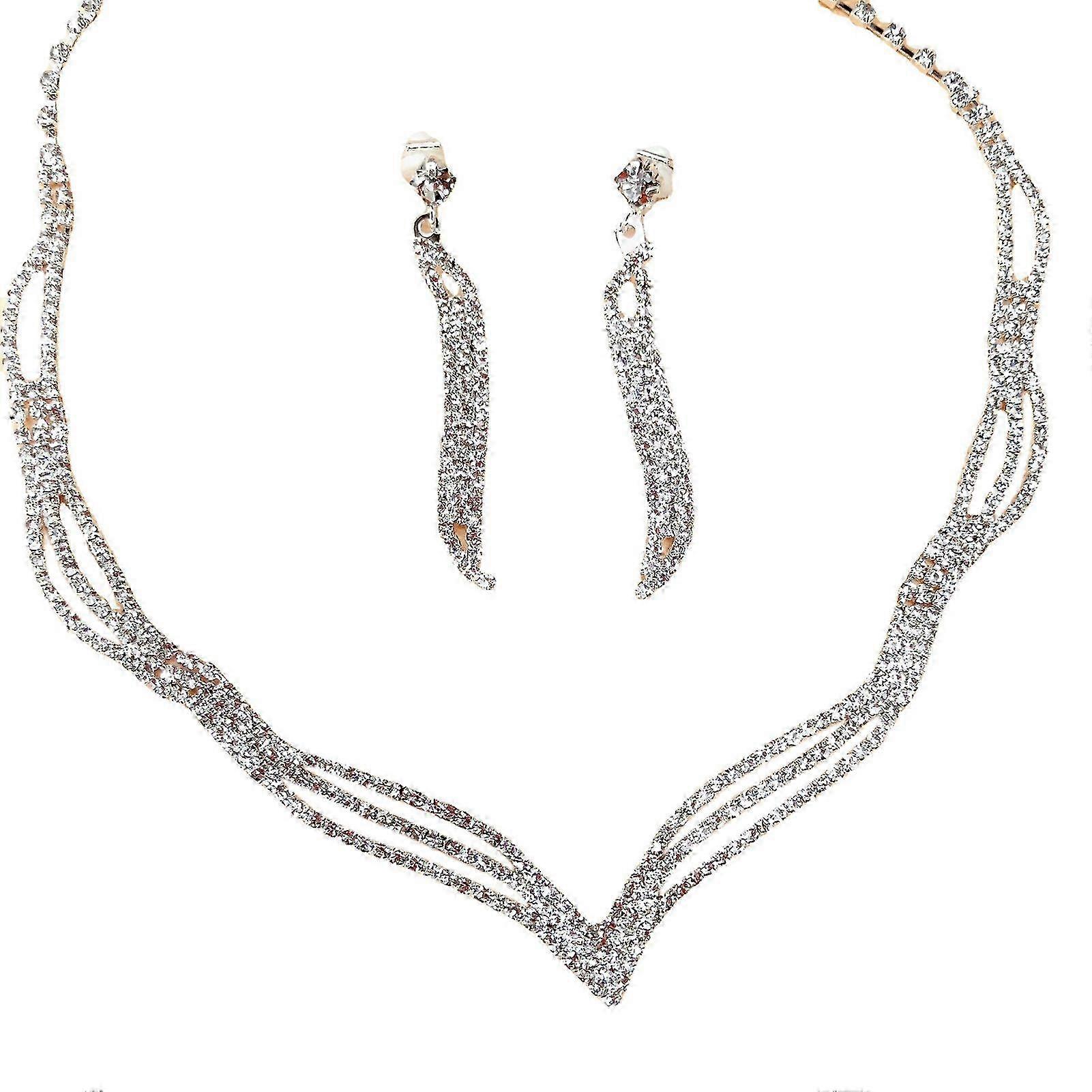 2Pcs/Set Geometry Shape Exquisite Workmanship Necklace Earrings Set Noble Shining Rhinestone Choker Necklace Drop Earrings Jewelry Accessory 2025
