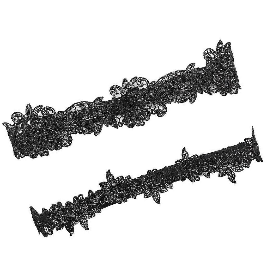 2Pcs/Set Women Wedding Bridal Leg Garters Solid Color Black/White Lace Flower Ho Black