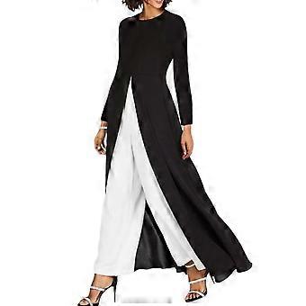 2 Pcs/Set Women Long Top Pants Set Retro Flower Print Split Hem Wide Leg Round Neck Deep Crotch Party Prom Commute Top Trousers Set