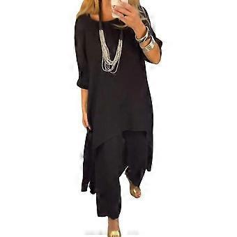 2 יח '/סט נשים מכנסיים עליונים סט צבע o שרוול צוואר ארוך מוצק בינוני מכפלת לא סדירה עליון רגל רחבה