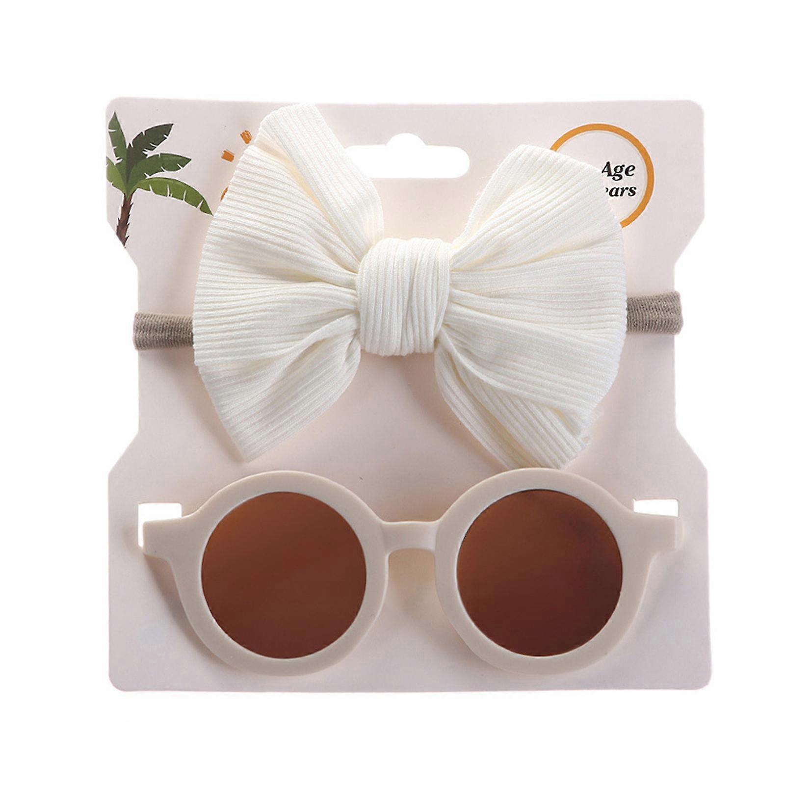 2 Pcs/Set Cute Cartoon Baby Headband Sunglasses Set for Travel Kids Children Eyeglasses Elastic Bowknot Hair Band Girls Headwear Hair Decoration Acces