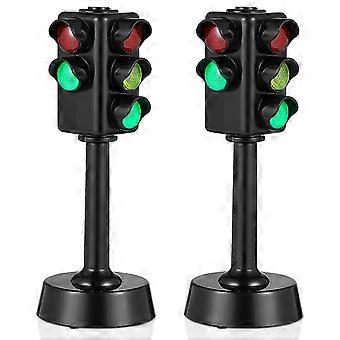 2 Pcs Traffic Lights Simulation Traffic Signal Lights Road Lights Traffic Marker Sign Lights Model Toys for Kids