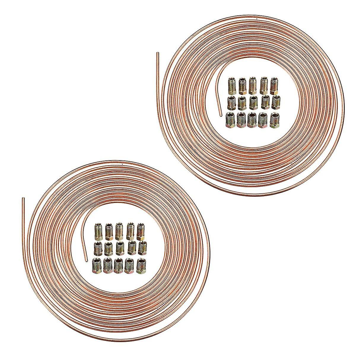 2 Pack 25ft Copper Nickel Brake Line Tubing Kit 3/16 Inch Od + 30pcs Fitting Nuts