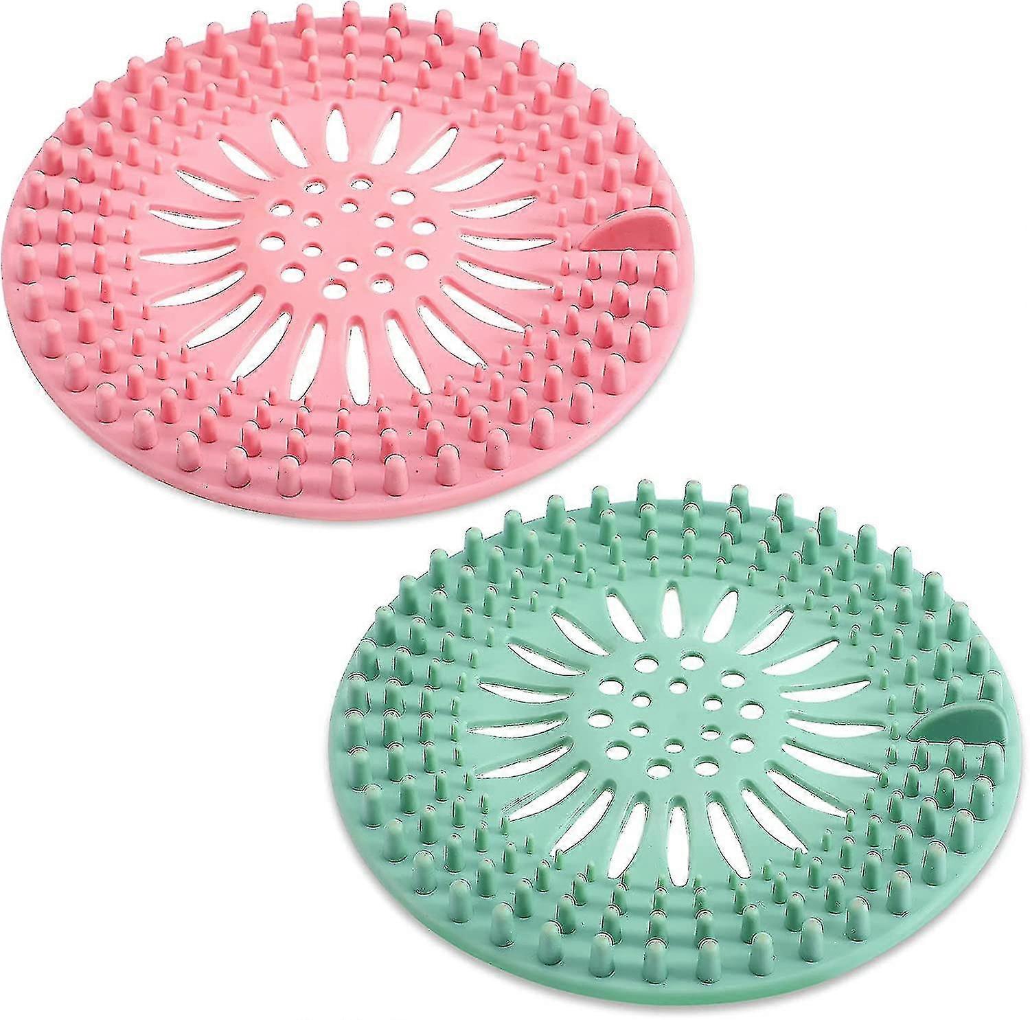 What you get: 2 pieces silicone tube drain hair catcher stopper, comes with natural pink and green, effectively catching hair while draining . Practical design: the drain cover has arranged raised designs around the drain cover, different heights can filter more efficiently, saving time and effort. The mesh keeps drainage and will not cause tube blockage . Material description: the sink filter is made of elastic silicone material, soft and wear-resistant, can be folded , this feature makes it easy to be washed and can be applied for many times . Easy to Use and Clean: place the drain covers device in an appropriate sink to effectively catch the hair. There is a small handle design on the edge, which can lift the filter directly, to avoid taking up more hand space