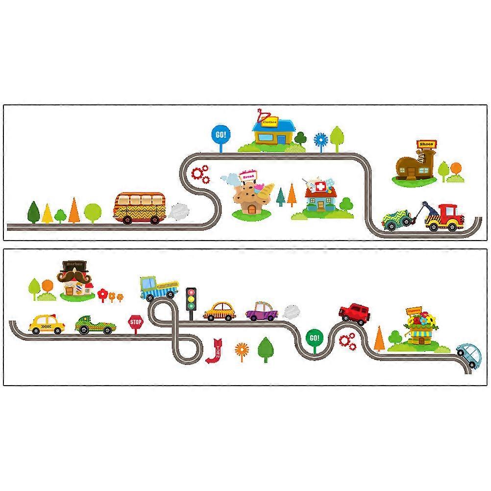 2 Sheets Window Stickers Kids Bedroom Decals Rail and Car Sticker Cartoon Wall Sticker