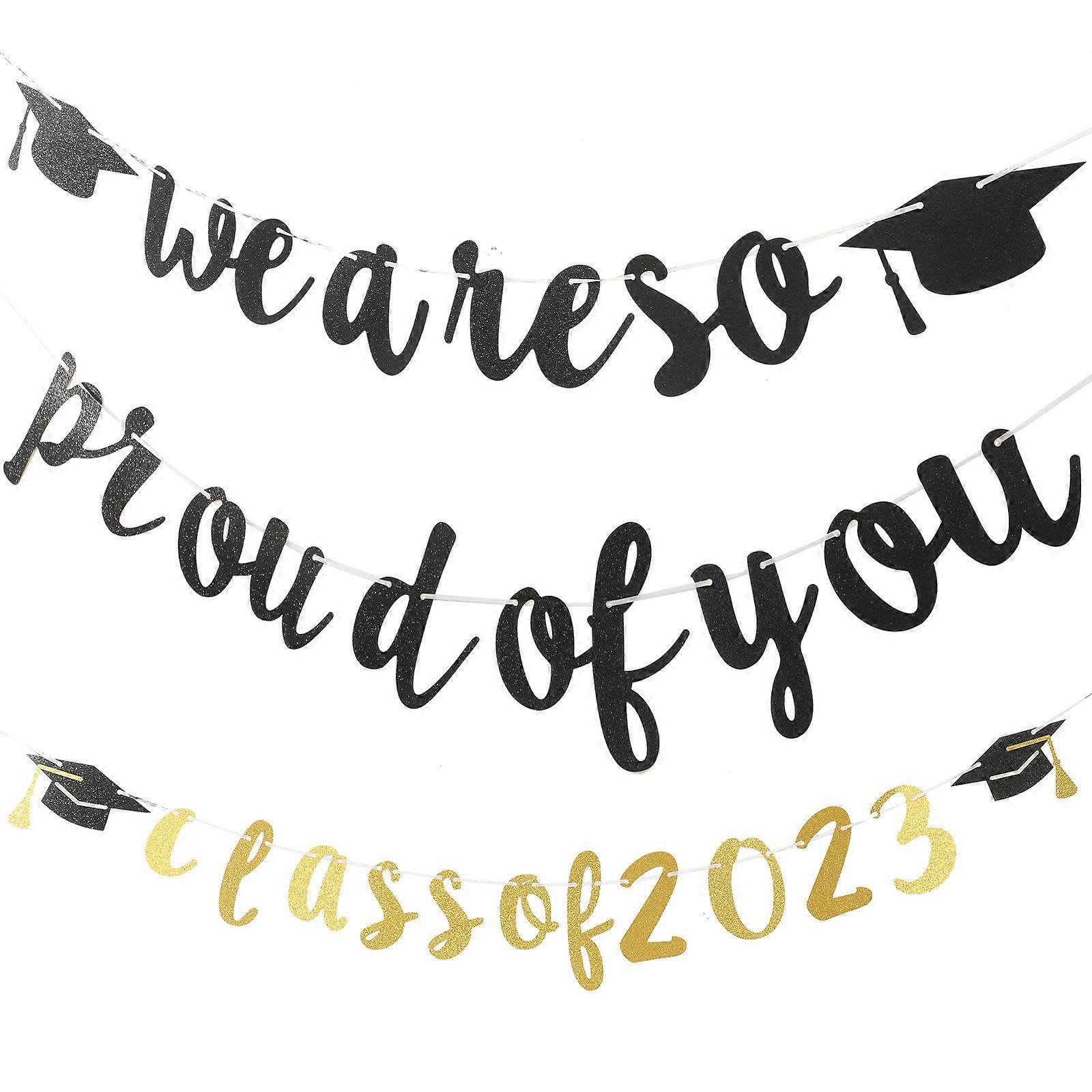 2 Sets Graduation Party Banner Hanging Decorations Proud You Lettering, Bright Colors for Ceremony Photo Backdrop
