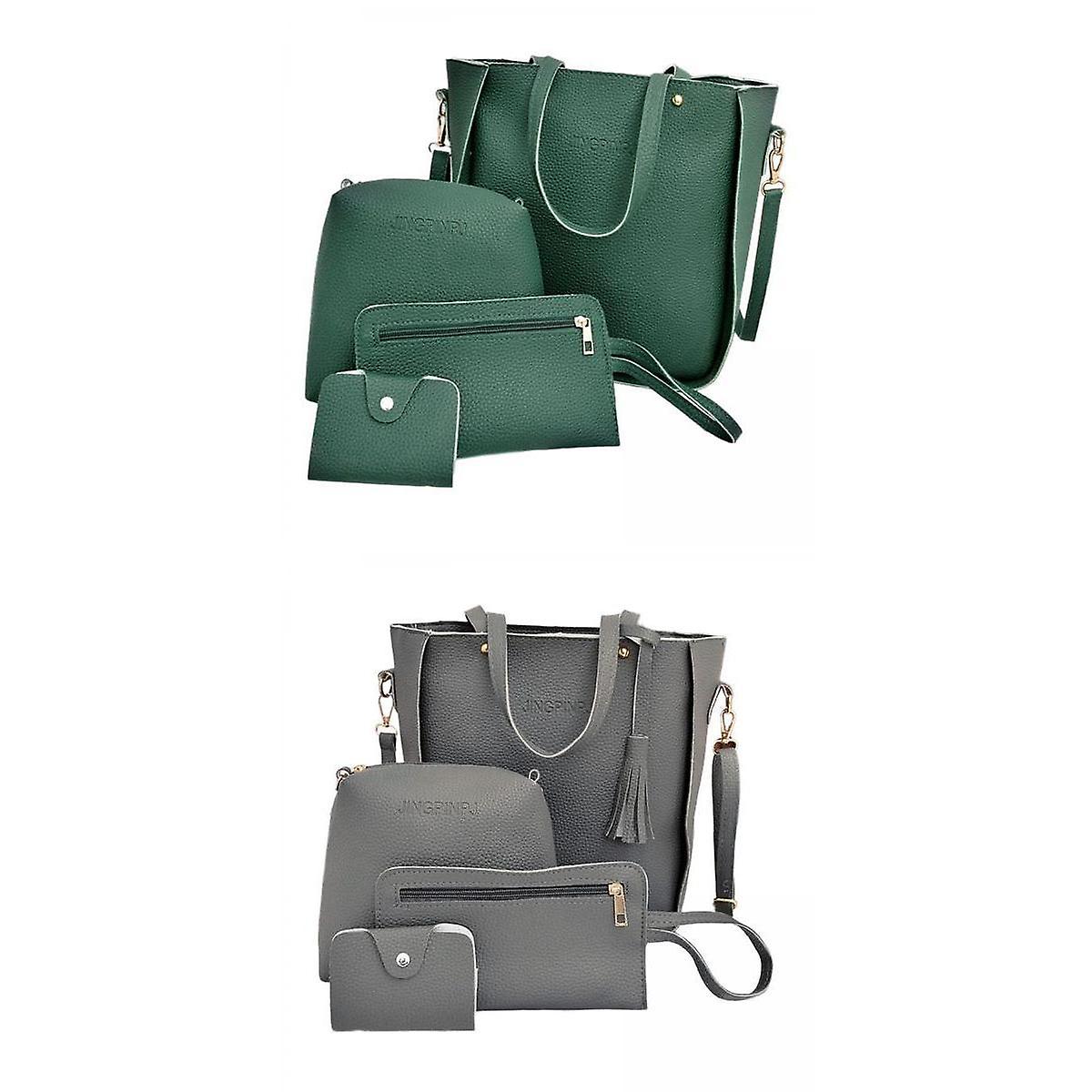 2 Sets Women PU Leather Handbags Set Zipper Closure Green+Gray