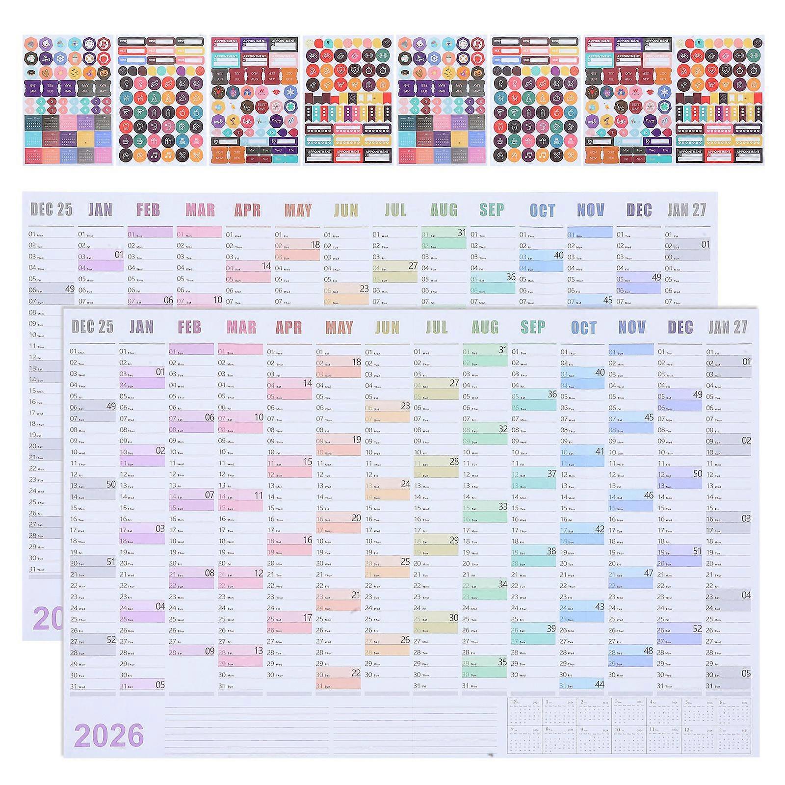 2 Sets 2026 Jumbo Wall Calendar - Monthly English Planner Writable Monthly Organizer With Stickers - Hanging Schedule Display For Office Home Family W