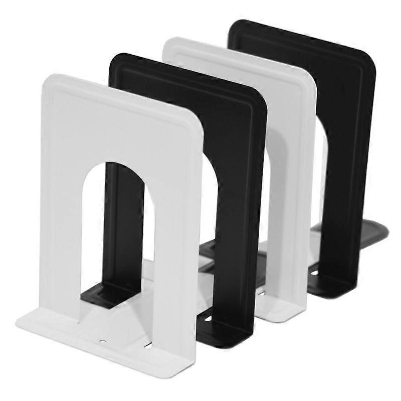 2 Sets of Simple Metal Book Riser Shelf Student Book Clip Book Leaner Creative Book Stopper (White, Black)