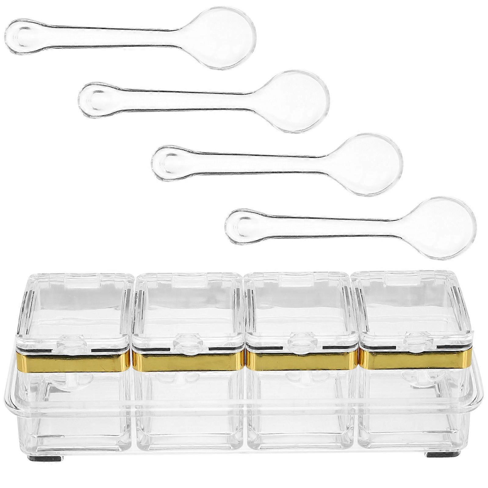 Condiment Container 2 Sets Golden Kitchen Spice Box Flip Cover Rectangular Spice Dispenser For Restaurant Kitchen Travel