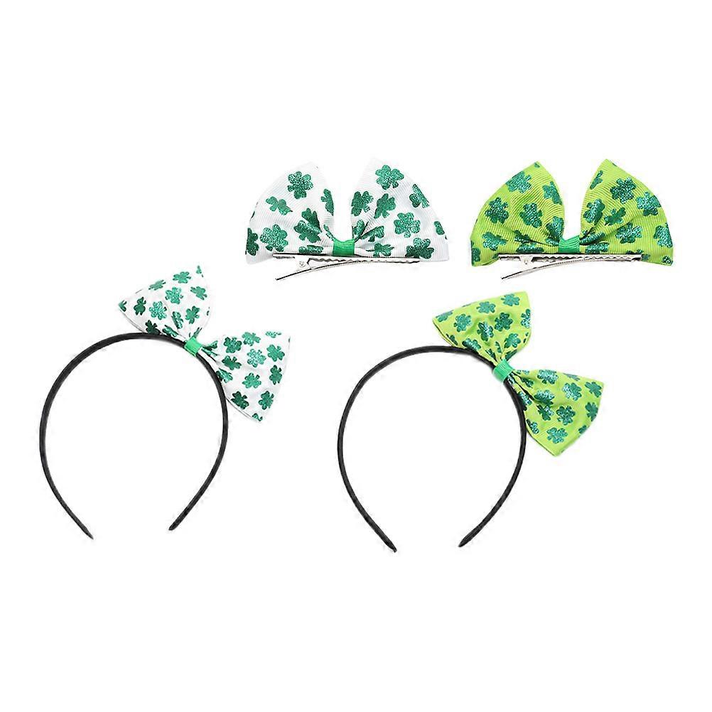 1 Set St Patricks Day Headband Bow Hair Clips Shamrock Pattern St Patricks Day Decoration Headdress Headwear Costume Props Hair Hoops Features - Color: As shown. - Material: Webbing; - Size hairband: About 20. 00X17. 00X1. 00cm/ 7. 86X6. 68X0. 39in. - Size hair clip: About. 50x6. 00cm/ 3. 74x2. 36inch; - Note: This product includes hair hoops and hair clips; - Color: Assorted Color. - Size: 20X17CM; Package list: 4 x hair clips 2 x hair hoops