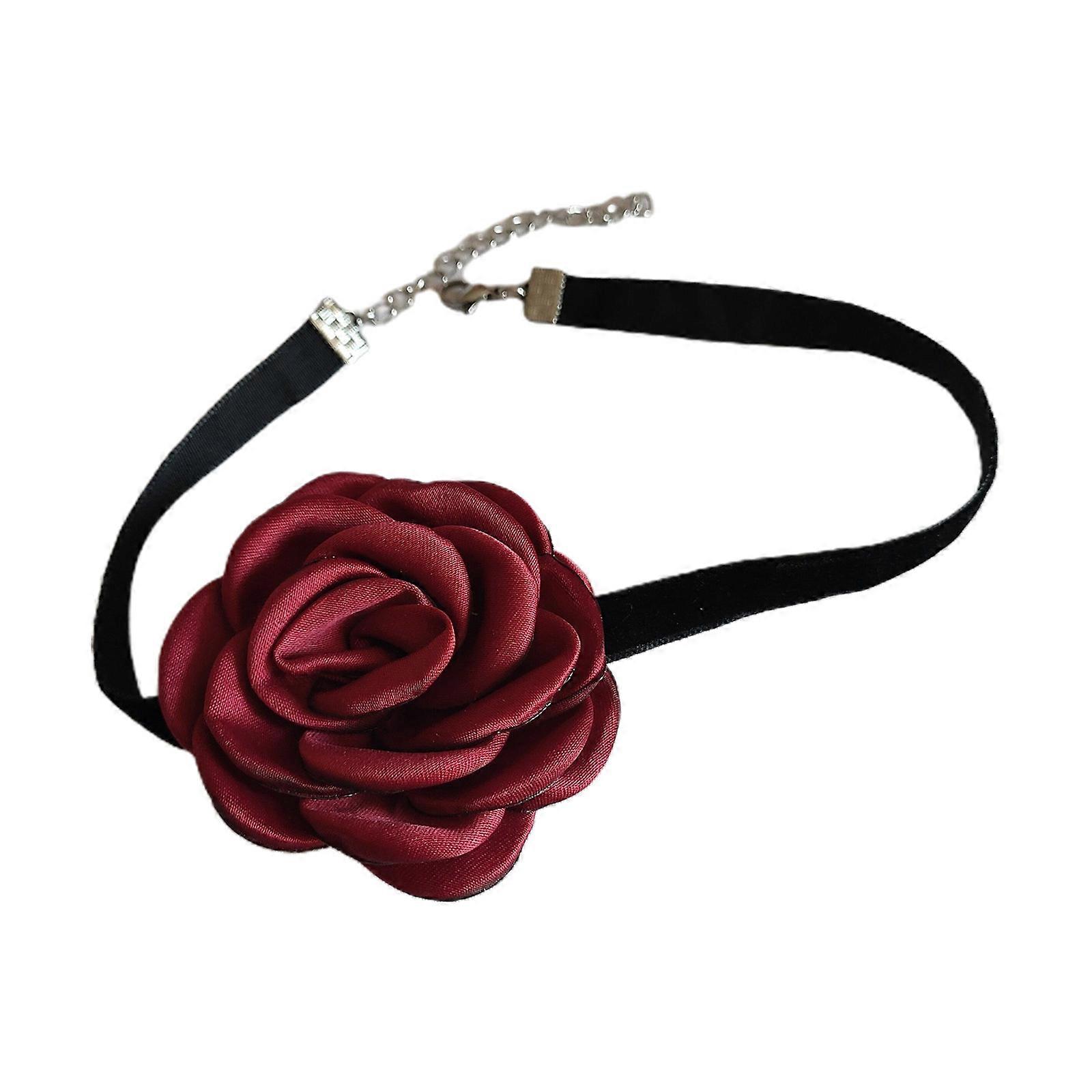 2 Colors Rose Flower Collar Velvets Necklace Small Fragrance Wind Clavicle Chain Temperament Ribbon Neck Chain Choker wine red