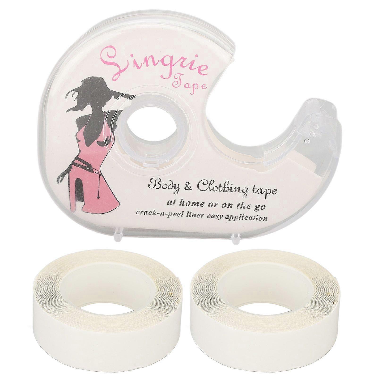 2 Rolls Women Double Sided Tape with Dispenser Transparent for Fashion Clothes Body All Skin