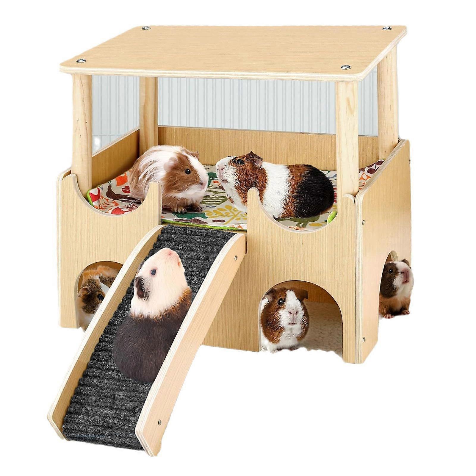 2 Level Pet Hideouts For Guinea Pigs Hamsters Ferrets with Ventilated Design Nonslip Slope for Small Animal Entertainment Multicolor