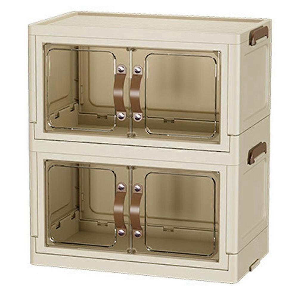 2-Layer Cabinet Desktop PP Organizer Transparent Door Stationery Cosmetics Storage Box