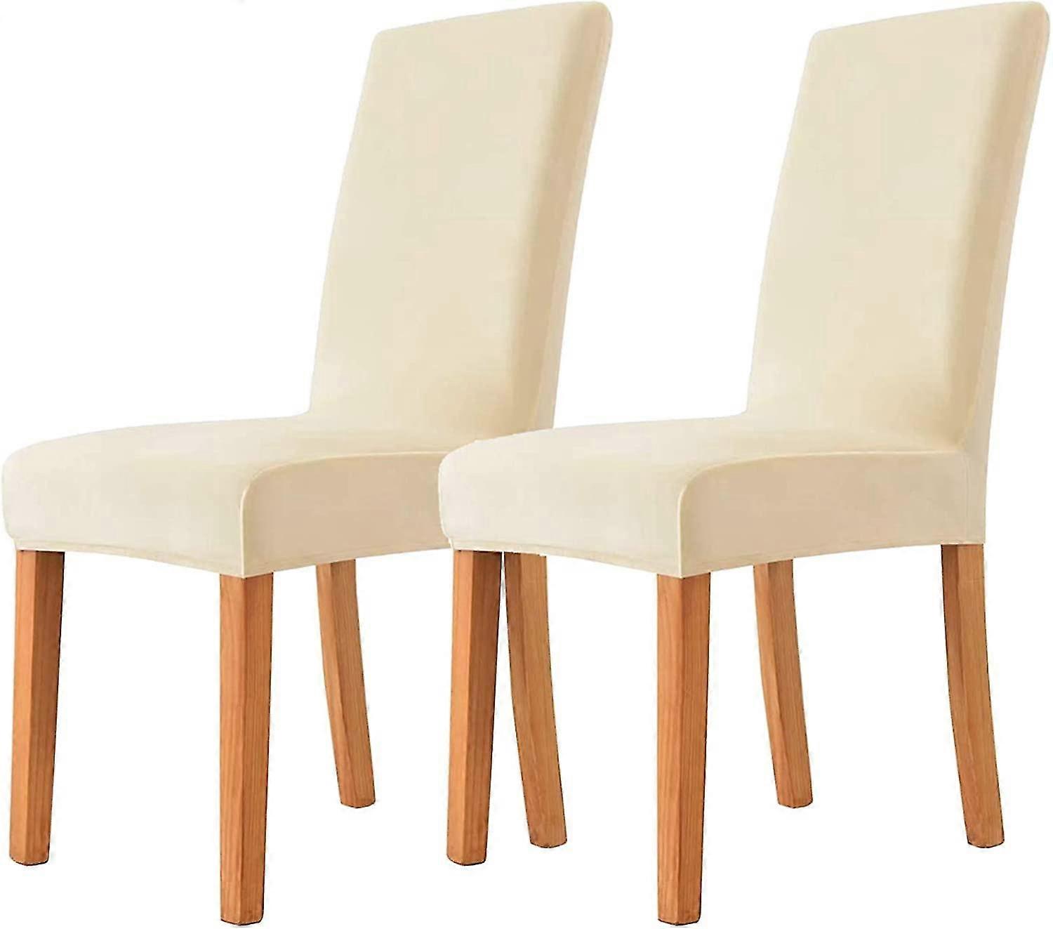set of 2 velvet dining chair slipcovers for dining room - beige