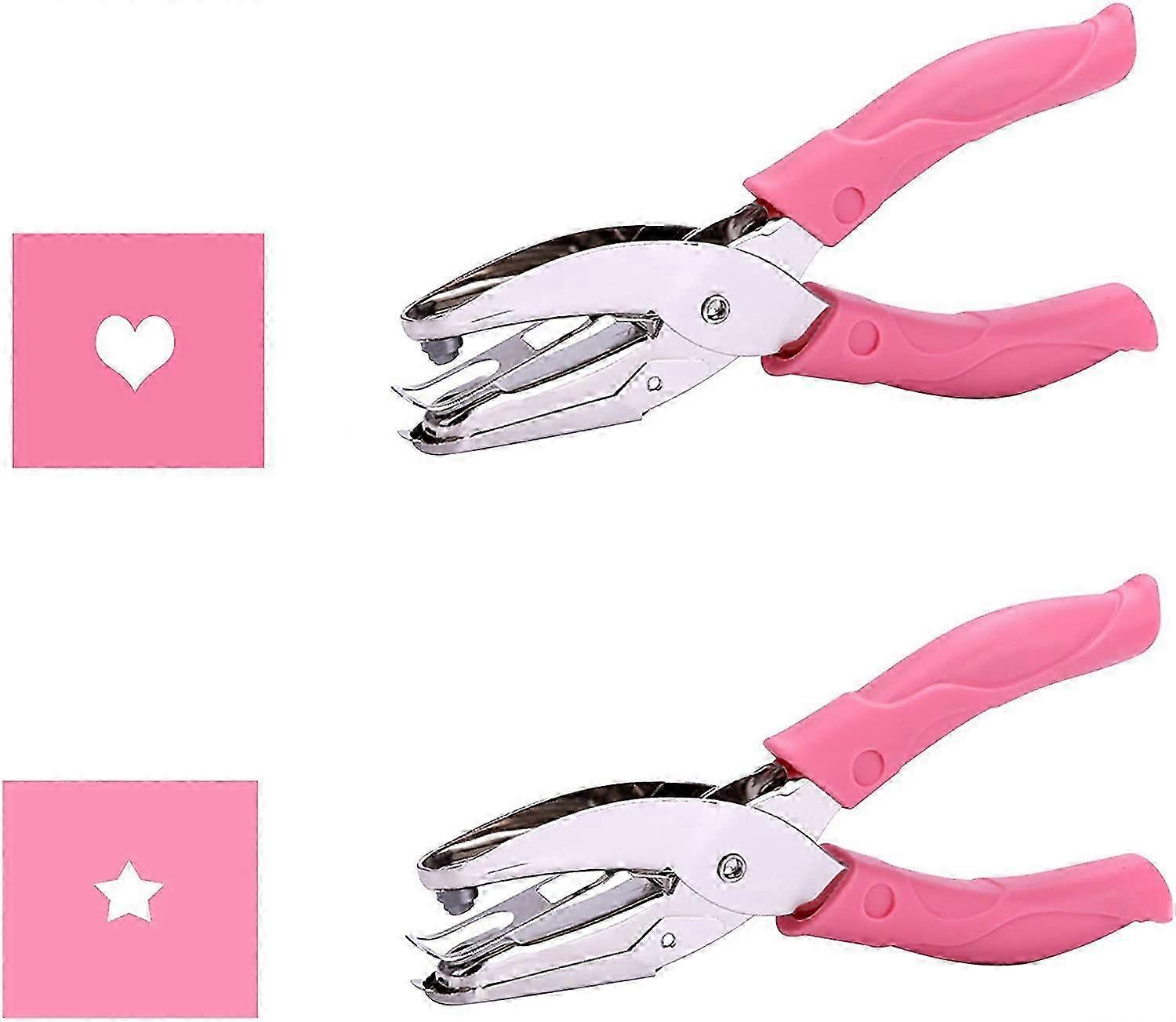 (2PCS) Small Mini Tiny Heart,Star Shaped Hole Paper Punch Puncher with Pink Soft Handheld Grip--