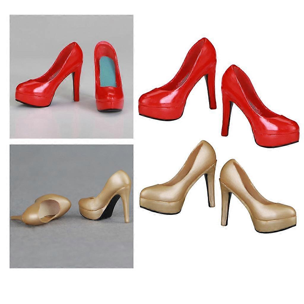 2 Pairs 1/6 Scale Female Body Seamless High Heels Shoes Stiletto Set (Red/Gold)